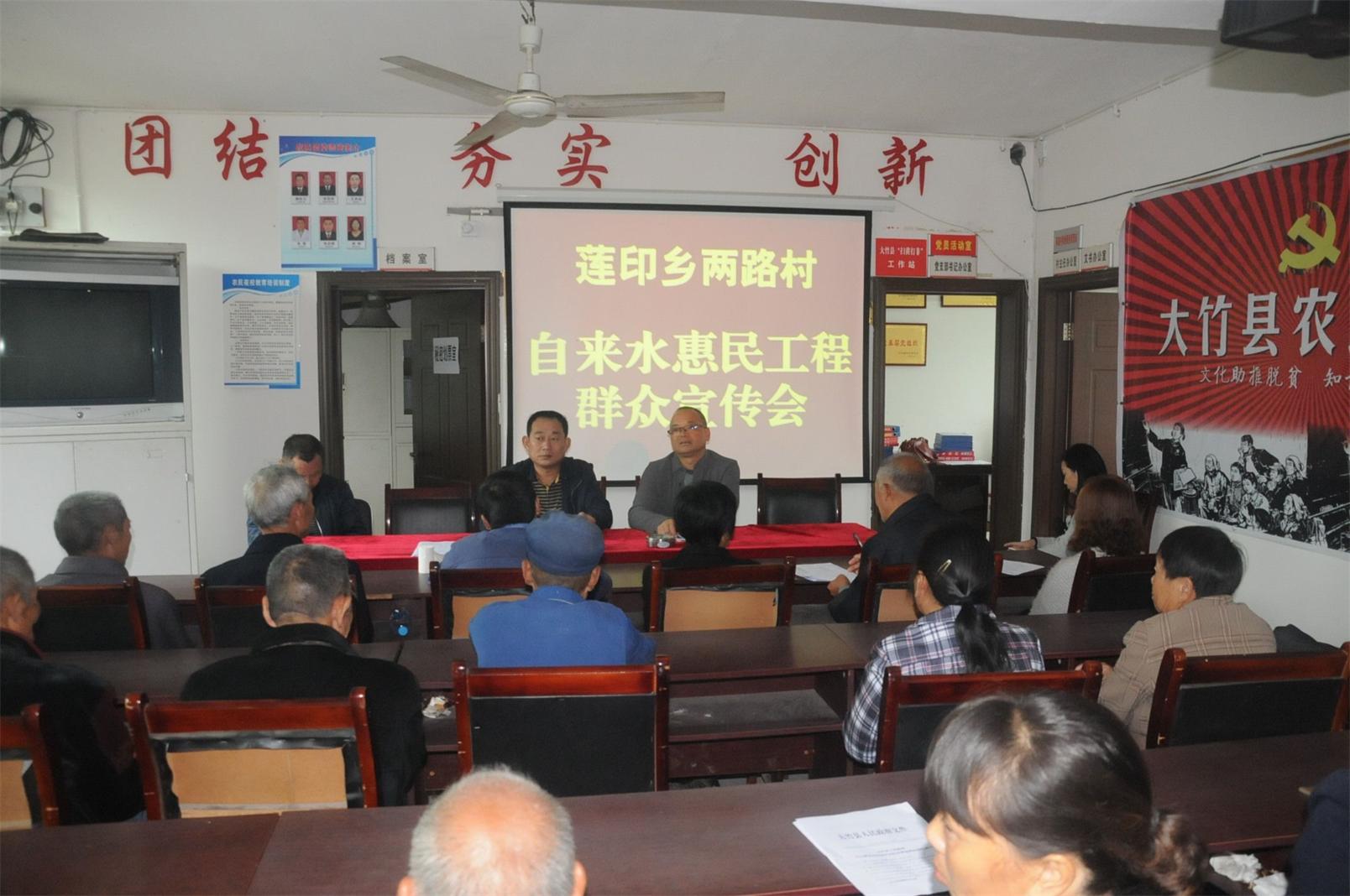 蓮印鄉(xiāng)兩路村地處城郊結合部地區(qū),廣大村民想用自來水的心情迫切,但又對供水水質(zhì)、安裝費用、管網(wǎng)維護等存在諸多顧慮。了解到這一情況,為消除廣大村民心中的疑慮,公司結合“走基層、辦實事、解難題、惠民生”活動的開展送服務下基層。宣講會上,公司副總經(jīng)理游協(xié)建從公司的服務辦事流程、供水水質(zhì)水壓的保障、供水價格、安裝上戶價格、總表與戶表的利弊等等廣大村民普遍關心的問題進行了全面的宣講,并耐心回答了村民的各種疑問,使大家對供水業(yè)務有了全面的了解和認識,也進一步堅定了廣大村民安裝自來水的決心。