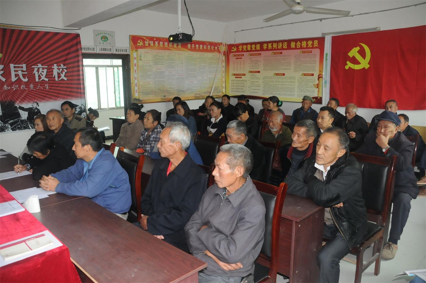 (圖為廣大村民代表認真聆聽宣傳)