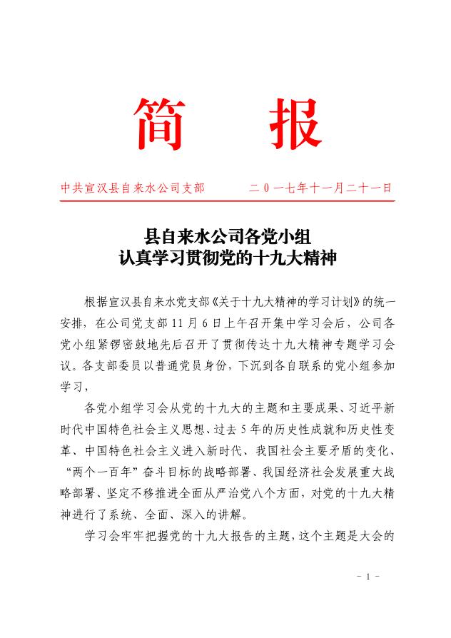 宣漢自來水公司各黨小組認真學(xué)習(xí)貫徹黨的十九大精神