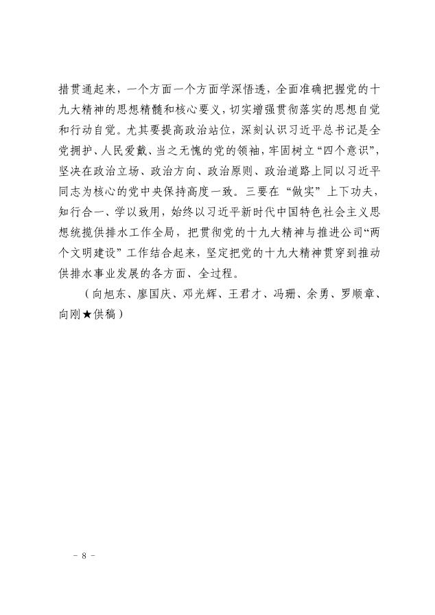 宣漢縣自來水公司黨支部集中學(xué)習(xí)黨的十九大報告精神