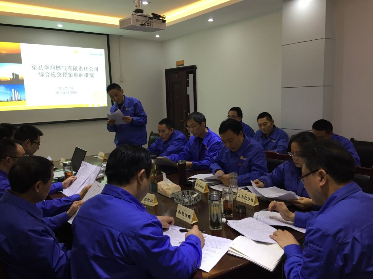 2017年12月6日上午,渠縣華潤燃?xì)庥邢挢?zé)任公司在公司會(huì)議室組織開展了渠縣華潤燃?xì)庥邢挢?zé)任公司2017年綜合應(yīng)急預(yù)案桌面推演。