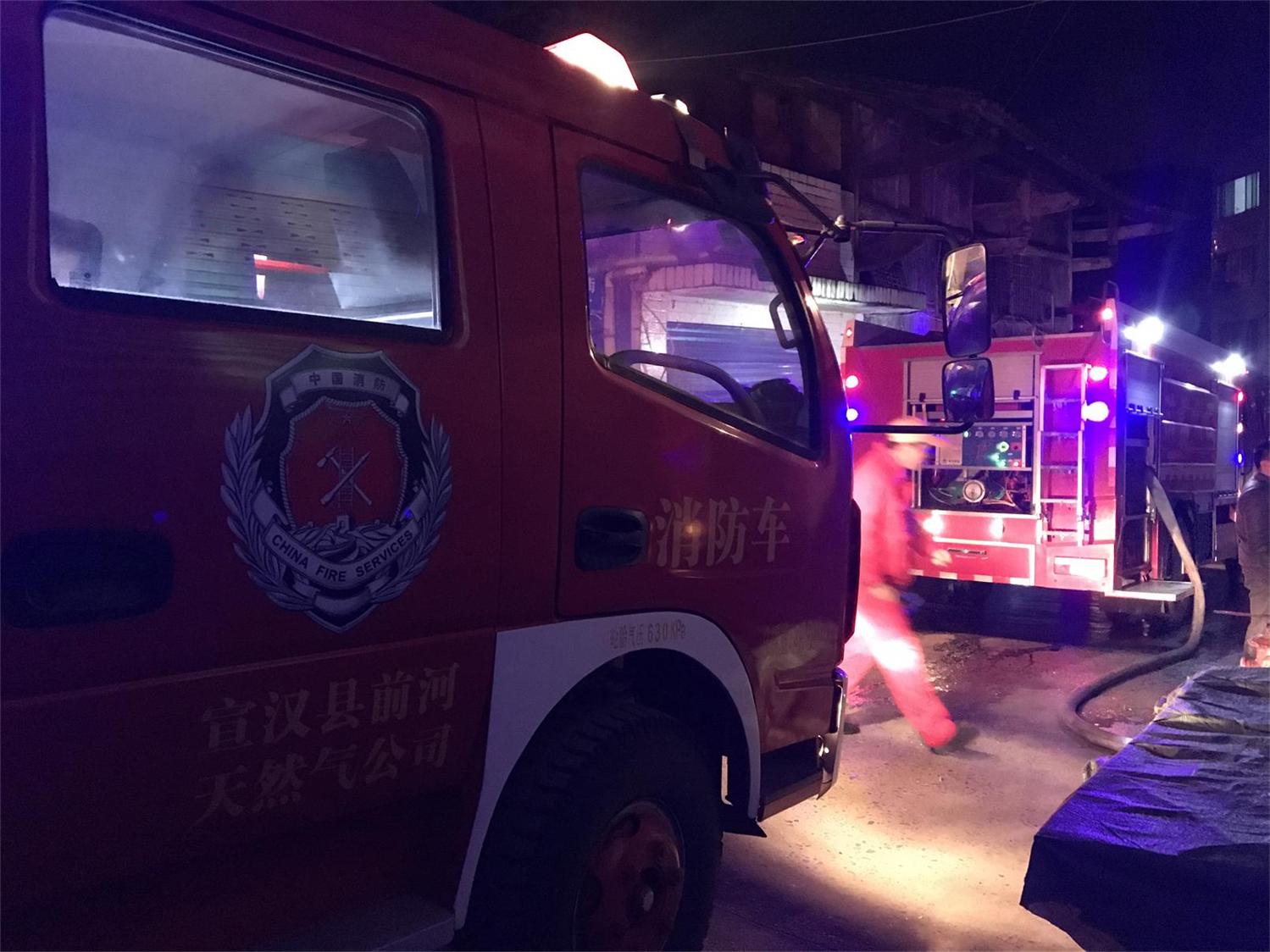 南壩鎮(zhèn)消防中隊接到報警后立即趕赴現(xiàn)場救援。由于起火民房屬木質結構,大火迅速蔓延。南壩鎮(zhèn)消防中隊請求宣漢縣前河天然氣有限公司派遣消防車及人員趕往現(xiàn)場增援。前河天然氣有限公司接到請求后,火情就是命令,從公司總經(jīng)理到消防員,一刻也不敢耽擱,立即啟動消防搶險應急預案,并在總經(jīng)理鄭玄同志的帶領下,組織消防車及義務消防隊員趕赴火場,迅速加入滅火施救工作中。經(jīng)過1個多小時的激烈救援,終于在4點許將火勢控制,避免了更大的災情發(fā)生。