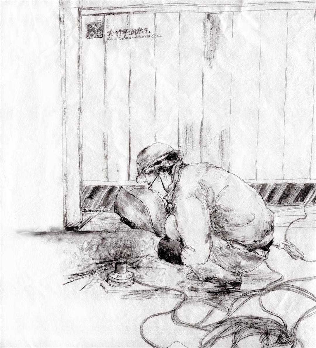 該畫(huà)取材于一次焊工技能大比武,現(xiàn)場(chǎng)焊機(jī)轟鳴、焊花飛濺、弧光閃爍,真實(shí)再現(xiàn)了焊工師傅全神貫注、細(xì)致打磨焊接的場(chǎng)景。全畫(huà)線條簡(jiǎn)樸,卻讓觀畫(huà)者在第一時(shí)間就萌生出對(duì)華潤(rùn)燃?xì)庖痪員工的濃濃敬意。君子敏于行而訥于言。專(zhuān)注,讓無(wú)數(shù)華潤(rùn)燃?xì)鈫T工在平凡的崗位上傾情奉獻(xiàn),最終匯聚成不平凡的浩瀚之勢(shì)。