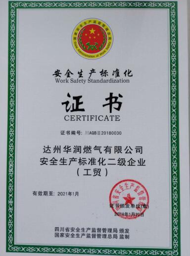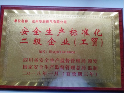 近日,達(dá)州華潤(rùn)燃?xì)庥邢薰颈凰拇ㄊ“踩a(chǎn)監(jiān)督管理局授予“安全生產(chǎn)標(biāo)準(zhǔn)化二級(jí)企業(yè)(工貿(mào))”獎(jiǎng)牌和證書(shū)。