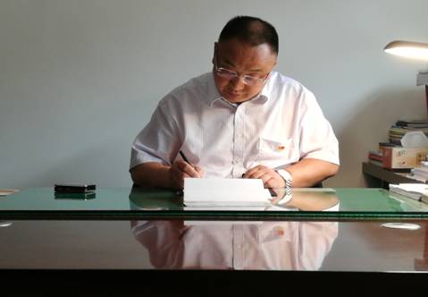 (圖為公司黨委書記、董事長(zhǎng)鄧小林同志示范引領(lǐng)并在上班期間自覺佩戴黨徽)