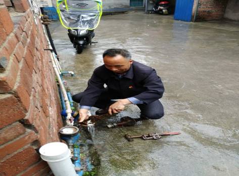 (公司黨員開展“雙報(bào)到”實(shí)施認(rèn)領(lǐng)供水管道維修服務(wù)事項(xiàng),圖為黨員自愿服務(wù)隊(duì)黨員在幸福社區(qū)轄區(qū)進(jìn)行供水管道義務(wù)維修場(chǎng)景)