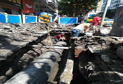 (公司黨員開展“雙報(bào)到”實(shí)施認(rèn)領(lǐng)供水管道改造服務(wù)事項(xiàng),圖為黨員自愿服務(wù)隊(duì)在幸福社區(qū)洞天處進(jìn)行供水管道改造場(chǎng)景)