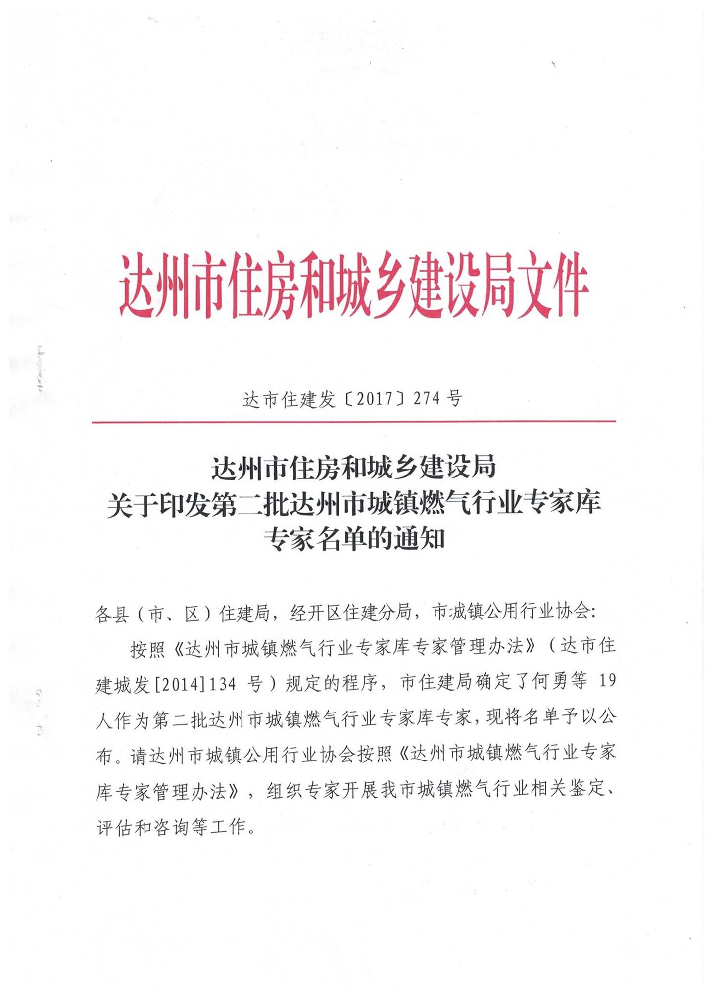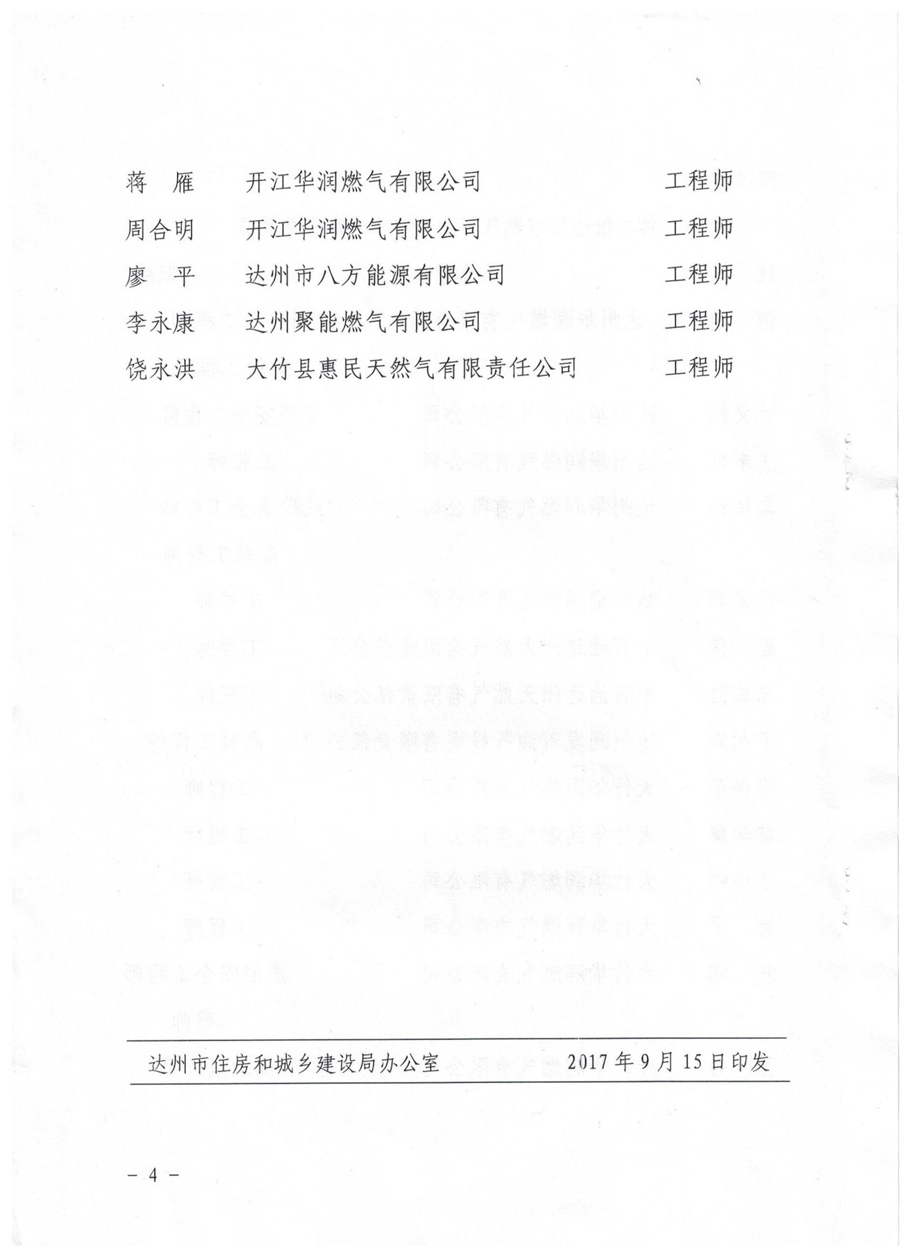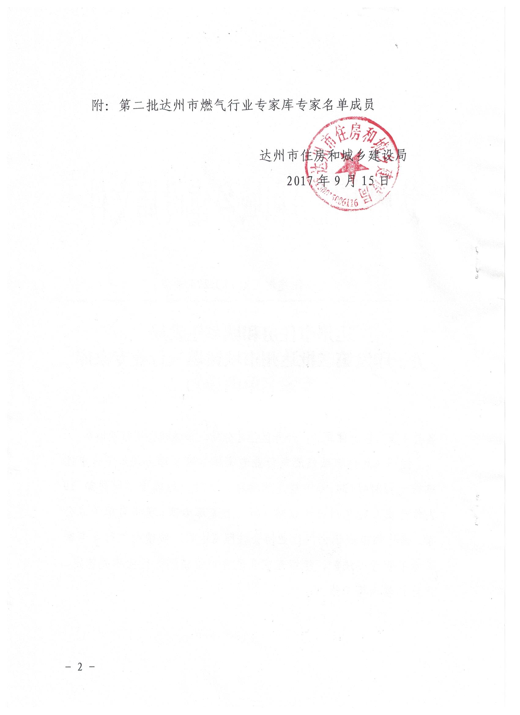 達州市住房和城鄉(xiāng)建設局第二批城鎮(zhèn)燃氣專家?guī)烀麊?