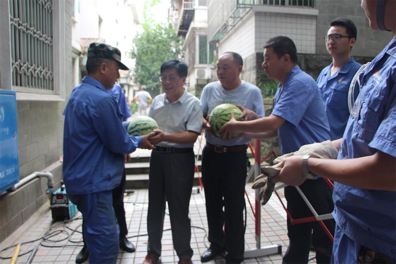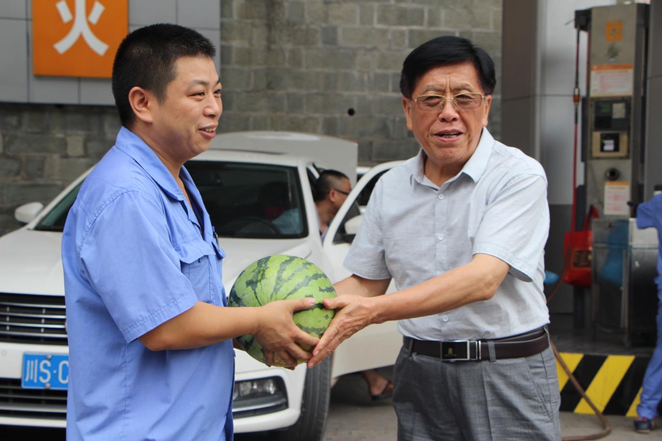 張會長一行先后驅(qū)車到肖公廟加氣站、文家梁搶險作業(yè)現(xiàn)場、海棠灣加氣站,為奮戰(zhàn)在高溫一線的員工們送去水果、防暑降溫藥品等,并叮囑員工在堅守崗位的同時要注意防暑,尤其是加氣站內(nèi)環(huán)境溫度高,更需落實防暑降溫工作。對他們堅守崗位促生產(chǎn)、奮戰(zhàn)高溫保安全、保障全市安全平穩(wěn)供氣表示感謝。領導們的一聲聲問候和贊譽,給一線員工們送去了炎炎夏日的的一份“清涼”,他們紛紛表示要加倍努力工作,保障安全穩(wěn)定生產(chǎn)。