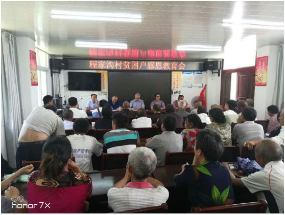 會(huì)上,村支部書(shū)記童德順介紹了村以前的艱苦條件逐步變?yōu)楝F(xiàn)在優(yōu)越的環(huán)境的變化過(guò)程,他說(shuō):“這是跟我們國(guó)家扶貧政策、幫扶單位、幫扶干部、工作隊(duì)是分不開(kāi)的,沒(méi)有他們就沒(méi)有我們現(xiàn)在這幸福生活,程家溝村的村民一定要記住他們的好、一定要有一顆感恩的心”。