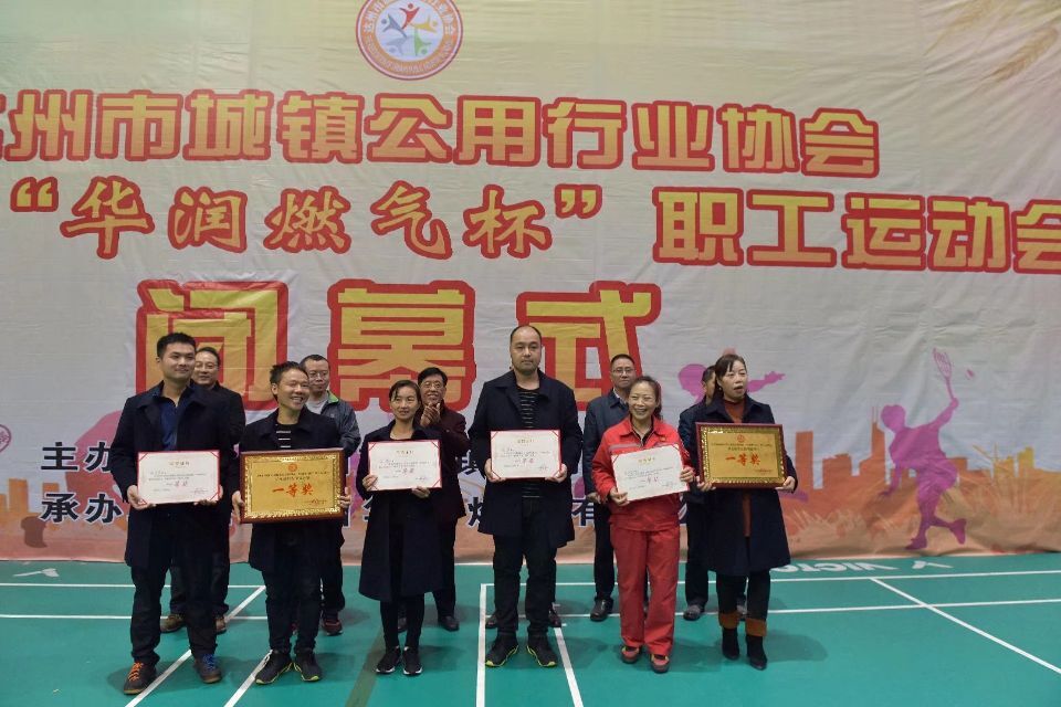 鳳凰山上秋色濃,州河岸邊迎盛會(huì)。在這滿山秋葉紅似火,碩果累累滿枝頭的季節(jié)里, 2018年11月9日達(dá)州市城鎮(zhèn)公用行業(yè)協(xié)會(huì)第四屆“華潤燃?xì)獗甭毠み\(yùn)動(dòng)會(huì)在達(dá)州市體育中心勝利閉幕了。來自達(dá)州市各縣(市、區(qū))燃?xì)狻⒐┡潘髽I(yè)和市住房和城鄉(xiāng)規(guī)劃建設(shè)教育培訓(xùn)中心共19個(gè)代表隊(duì),250多名裁判員、運(yùn)動(dòng)員參加了羽毛球(男、女)單打、羽毛球混雙,乒乓球(男、女)單打、乒乓球混雙,象棋、田徑4*100米、兩人三足趣味賽,拔河8個(gè)項(xiàng)目比賽。經(jīng)過兩天的激烈競爭,大竹縣泓霖供水有限責(zé)任公司榮獲本次運(yùn)動(dòng)會(huì)團(tuán)體第一名;達(dá)州華潤燃?xì)庥邢薰、中石油達(dá)州天然氣有限責(zé)任公司榮獲本次運(yùn)動(dòng)會(huì)團(tuán)體第二名;大竹華潤燃?xì)庥邢薰、開江華潤燃?xì)庥邢薰尽⑷f源市巨能管道燃?xì)庥邢薰緲s獲本次運(yùn)動(dòng)會(huì)團(tuán)體第三名;渠縣供水排水總公司等6個(gè)單位獲得優(yōu)秀組織獎(jiǎng);大竹縣泓霖供水有限責(zé)任公司等6個(gè)單位分別榮獲田徑4*100米接力一、二、三等獎(jiǎng);大竹華潤燃?xì)庥邢薰镜?/SPAN>6個(gè)單位分別榮獲拔河比賽一、二、三等獎(jiǎng);大竹縣泓霖供水有限責(zé)任公司等6個(gè)單位分別榮獲兩人三足趣味賽一、二、三等獎(jiǎng);張見榮、伍開春、范勇、王梅、(張見榮、江華)、(王梅、楊廷均)等42名同志分別獲得羽毛球單打及混雙、乒乓球單打及混雙、象棋比賽一、二、三等獎(jiǎng)。在閉幕式上,與會(huì)領(lǐng)導(dǎo)分別向獲獎(jiǎng)的單位和個(gè)人頒發(fā)了獎(jiǎng)狀和證書!