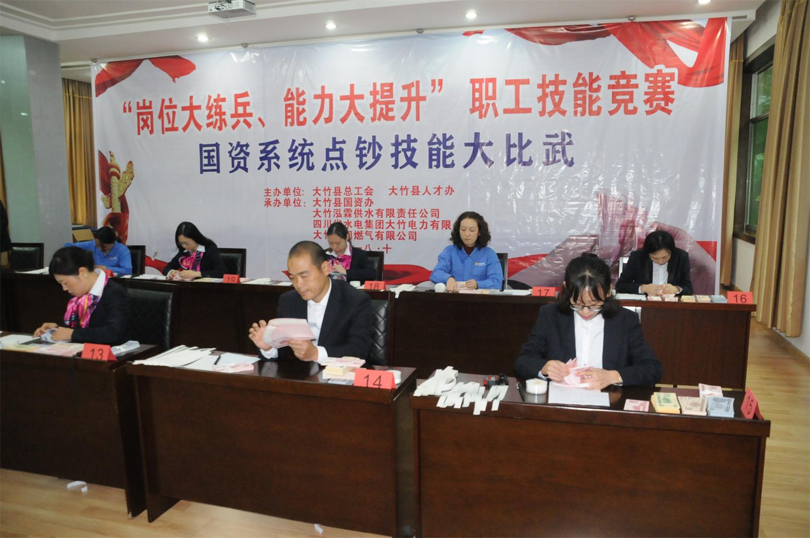 泓霖供水公司參加國資系統(tǒng)2018年點鈔技能大比武獲佳績。為全面提升國資系統(tǒng)窗口服務(wù)人員綜合素質(zhì),10月19日,由大竹縣總工會、縣人才辦主辦,縣國資辦、大竹泓霖供水公司、大竹華潤燃氣公司、四川省水電集團大竹電力公司承辦的“崗位大練兵、能力大提升”國資系統(tǒng)點鈔技能大比武在泓霖供水公司隆重舉行。
