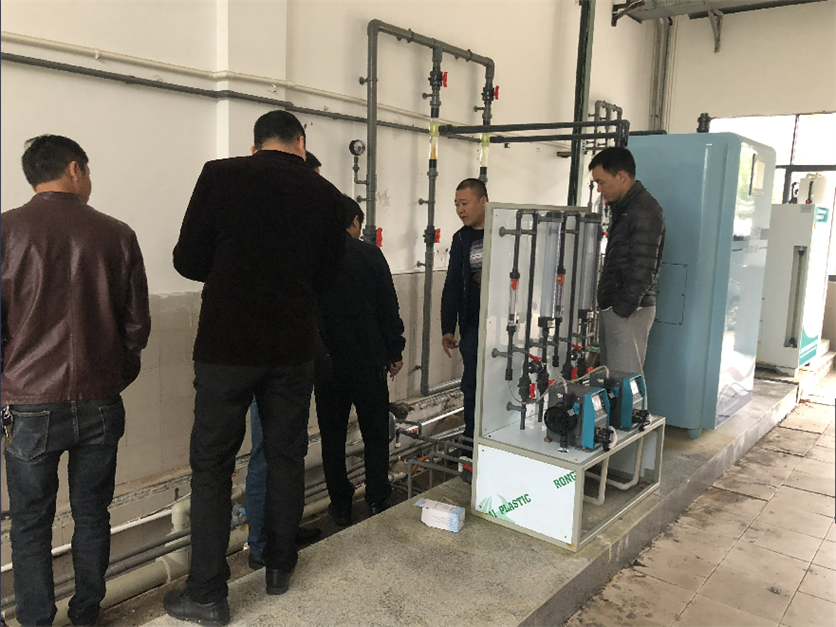 經(jīng)設(shè)備廠家的工作人員的講解,驗收小組成員逐一了解了新購設(shè)備的作用及性能,設(shè)備安裝調(diào)試好后設(shè)備廠家積極組織了西城水廠的員工進行學習操作,更好的了解了新購的二氧化氯發(fā)生器的操作規(guī)程,為以后正式進入生產(chǎn)打下了基礎(chǔ)。