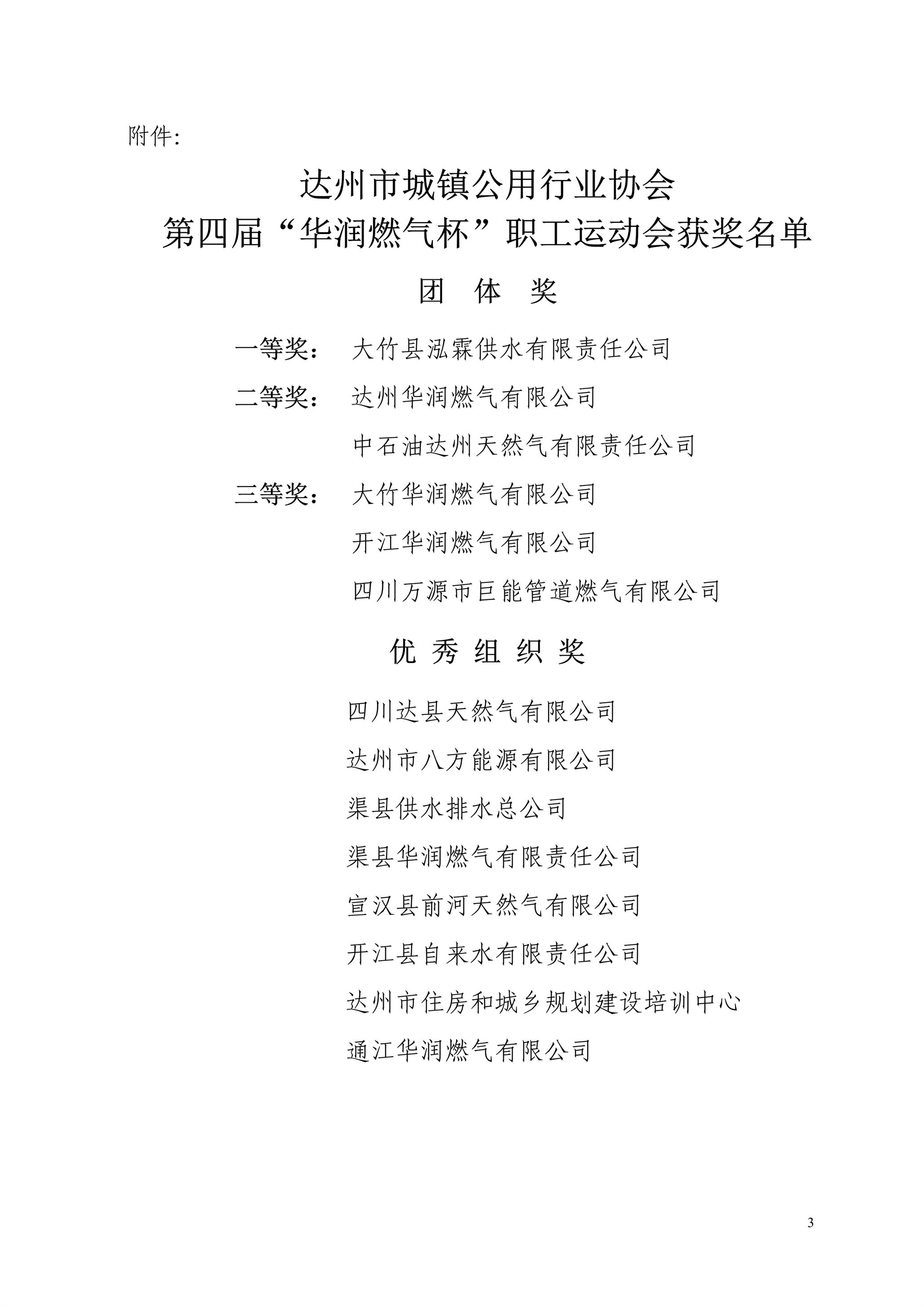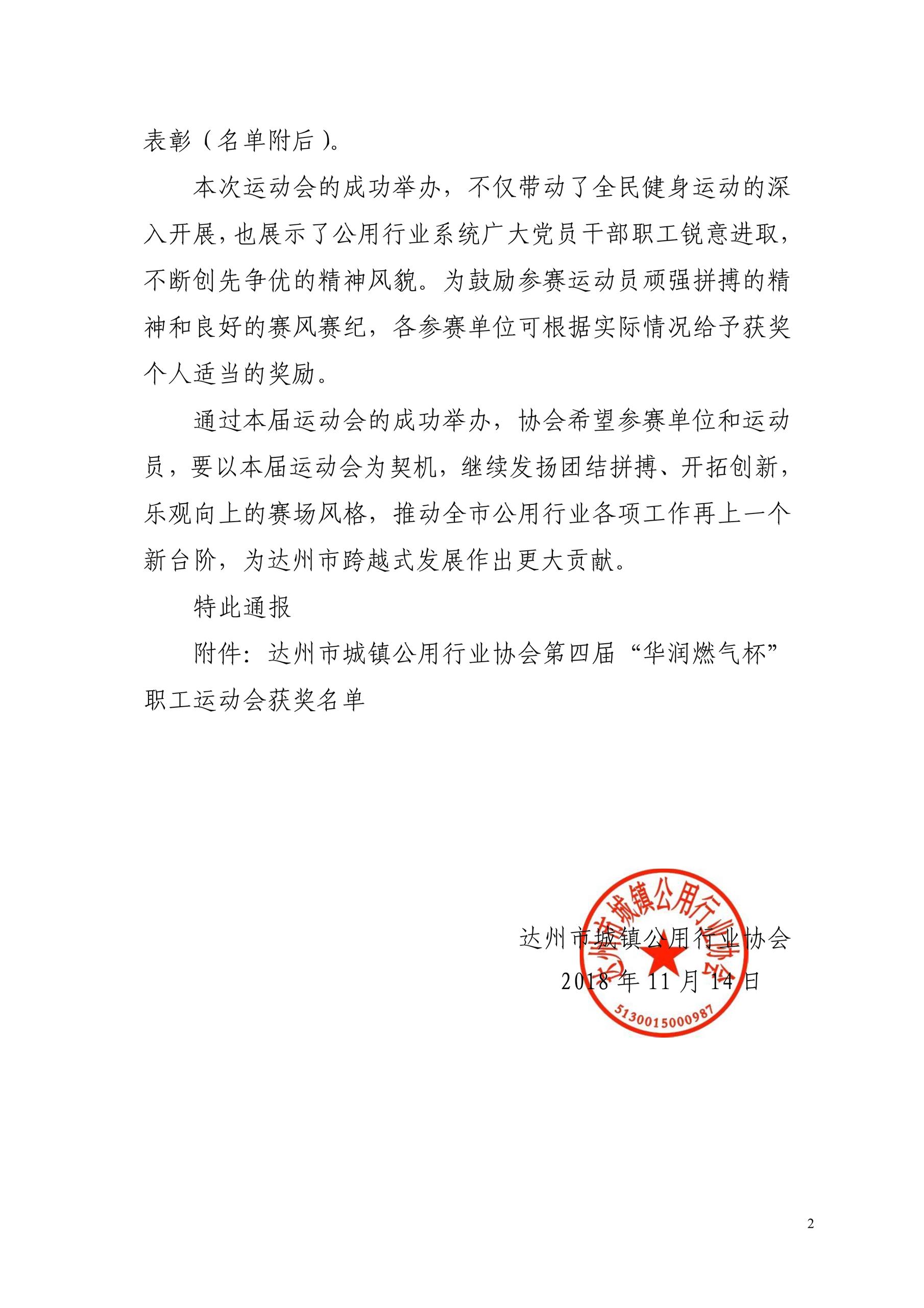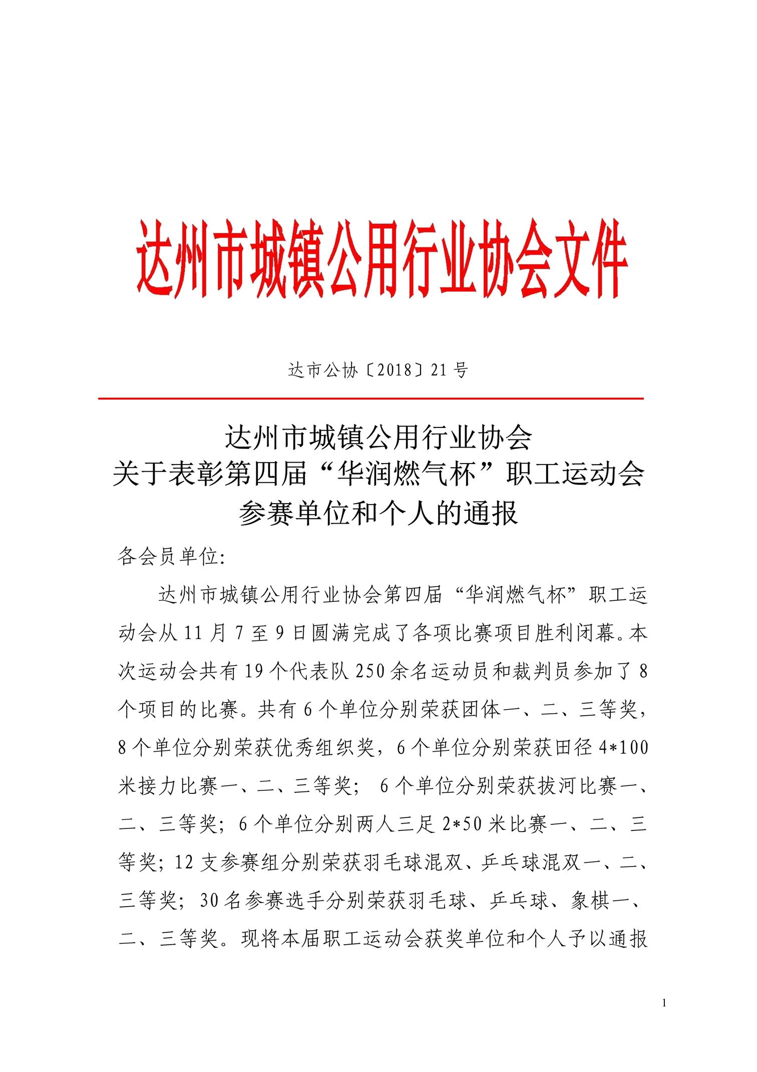 達(dá)州市城鎮(zhèn)公用行業(yè)協(xié)會第四屆職工運(yùn)動會表彰通報