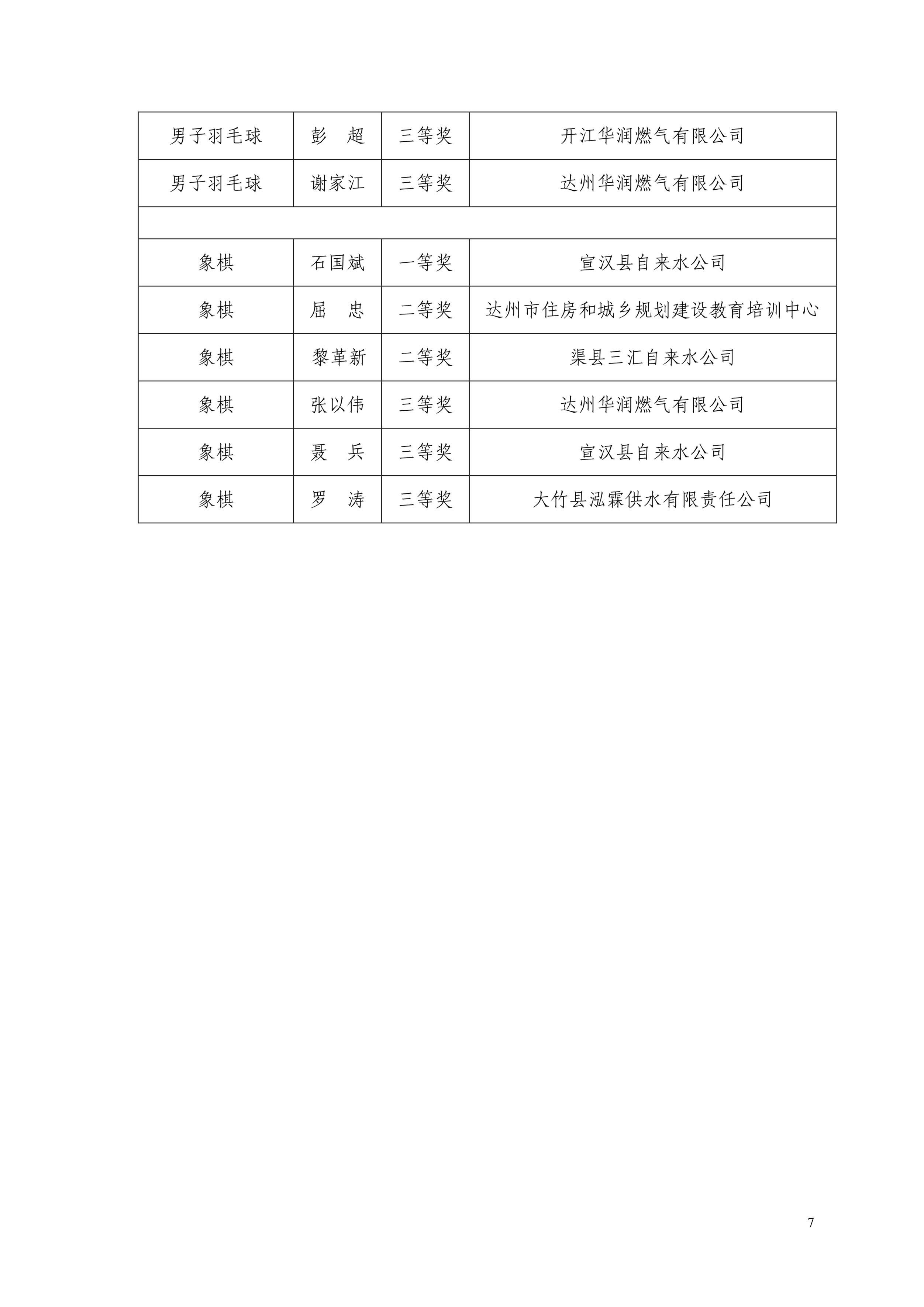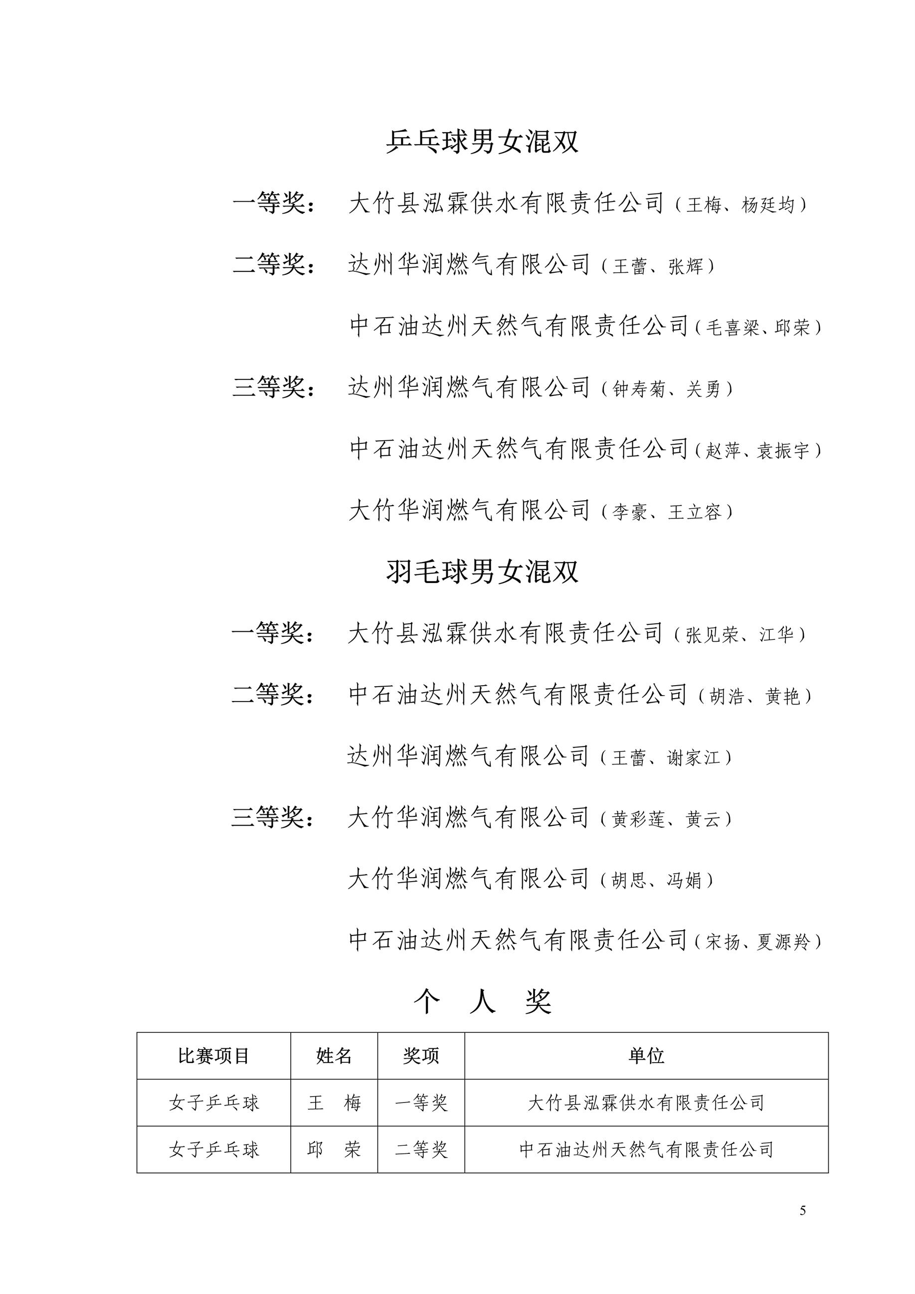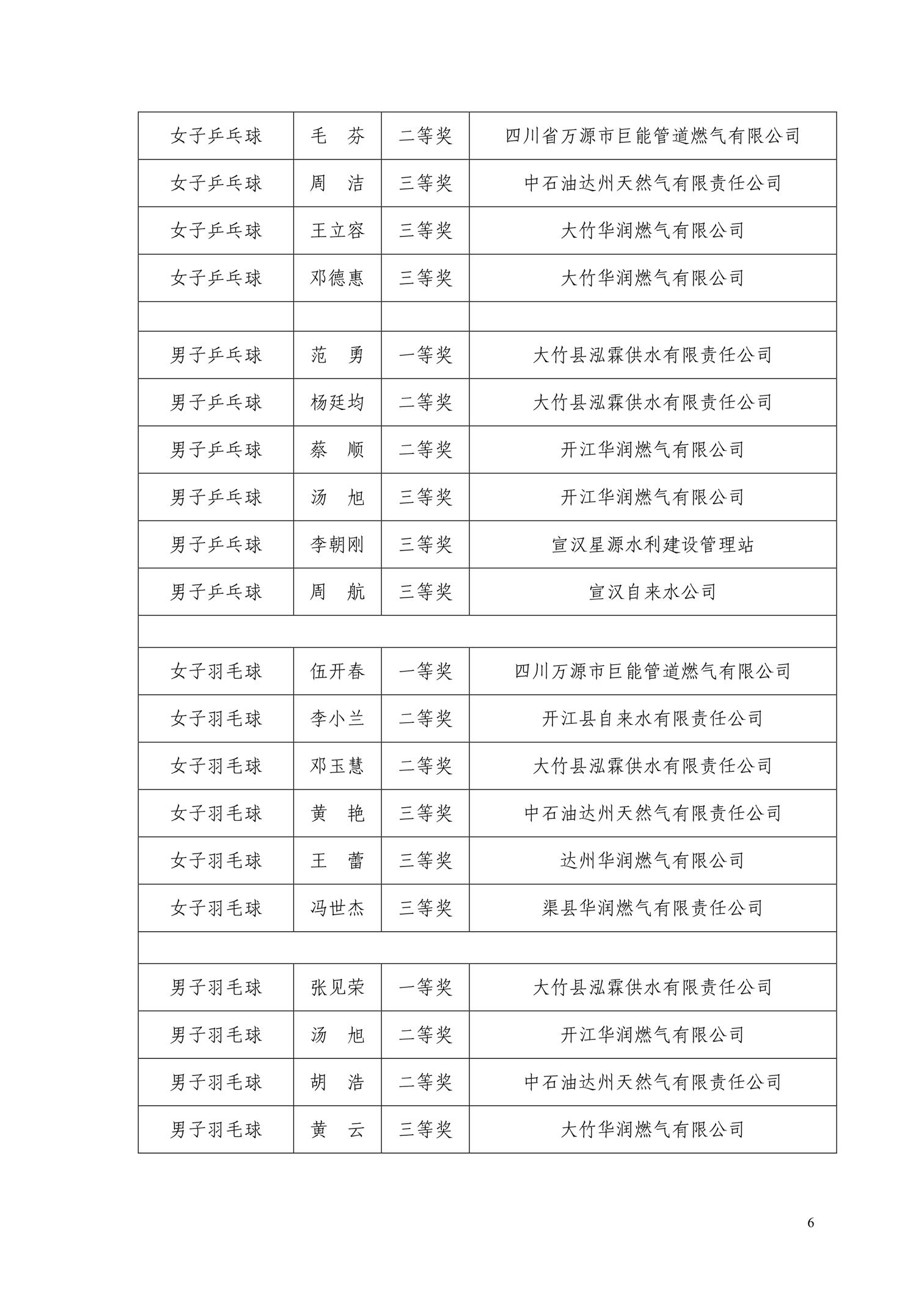 達(dá)州市城鎮(zhèn)公用行業(yè)協(xié)會第四屆職工運(yùn)動會表彰通報