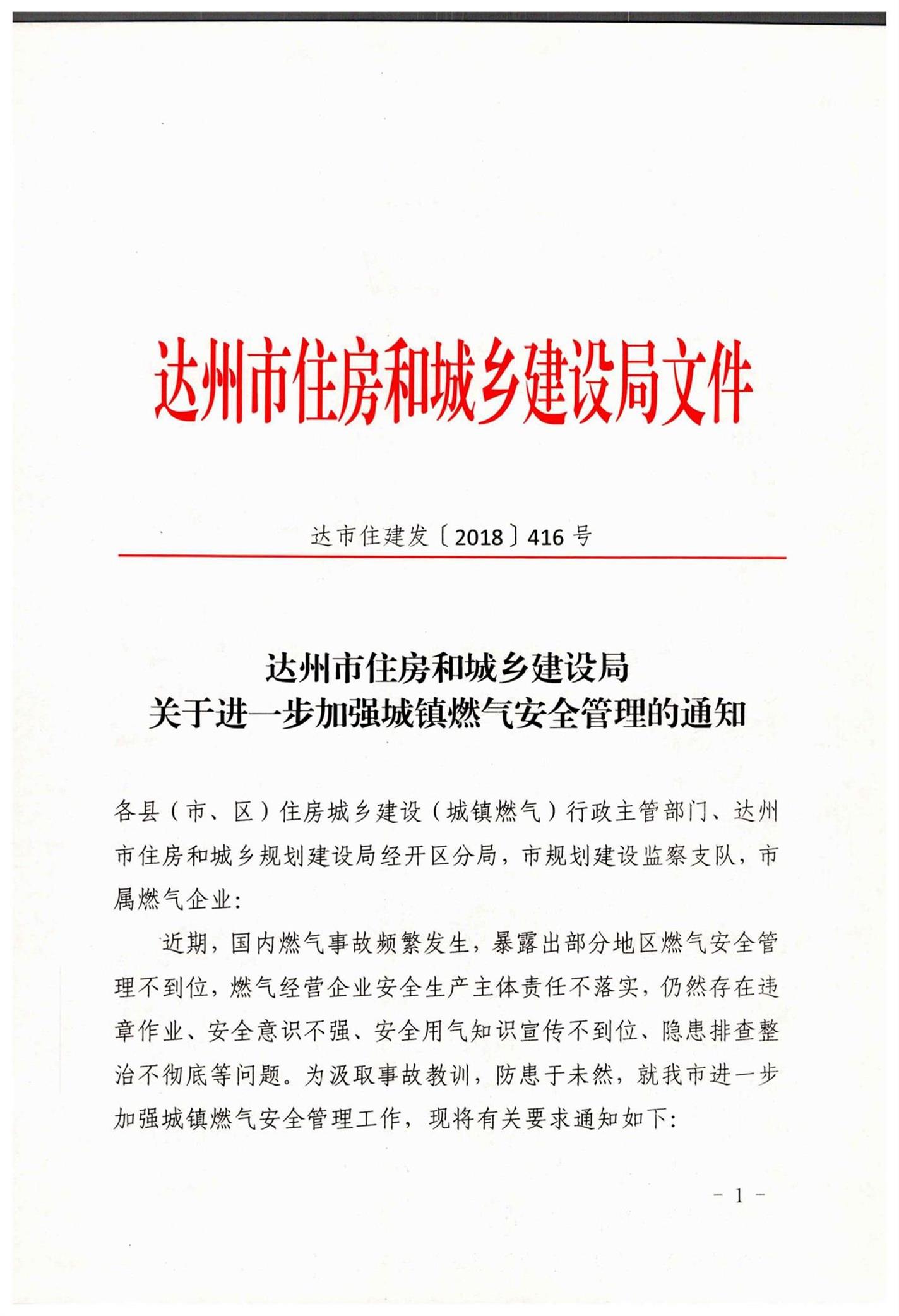 達(dá)州市住房和城鄉(xiāng)建設(shè)局關(guān)于進(jìn)一步加強(qiáng)城鎮(zhèn)燃?xì)獍踩芾淼耐ㄖ?