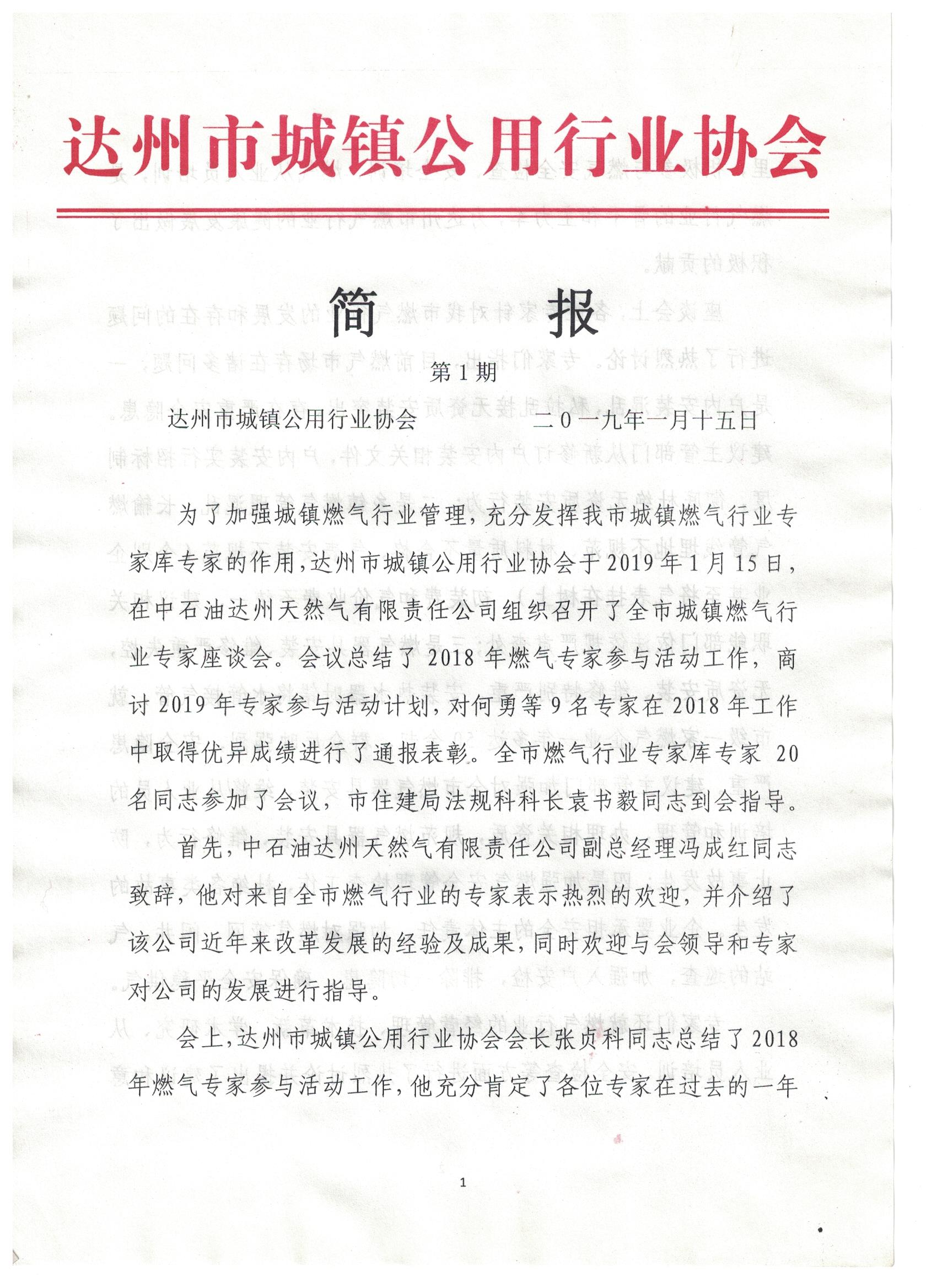 達(dá)州市城鎮(zhèn)公用行業(yè)協(xié)會2019年第一期簡報