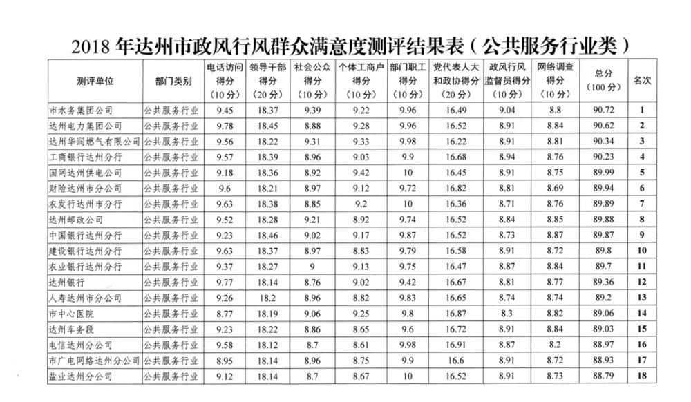 1月9日,達州市紀委監(jiān)委聯(lián)合發(fā)文,對2018年度市級部門和公共行業(yè)政風行風群眾滿意度測評結(jié)果作了通報。達州華潤燃氣有限公司在全市公共服務行業(yè)類28個單位中一舉奪得第三名,贏得政府相關部門和廣大市民群眾的一致好評。