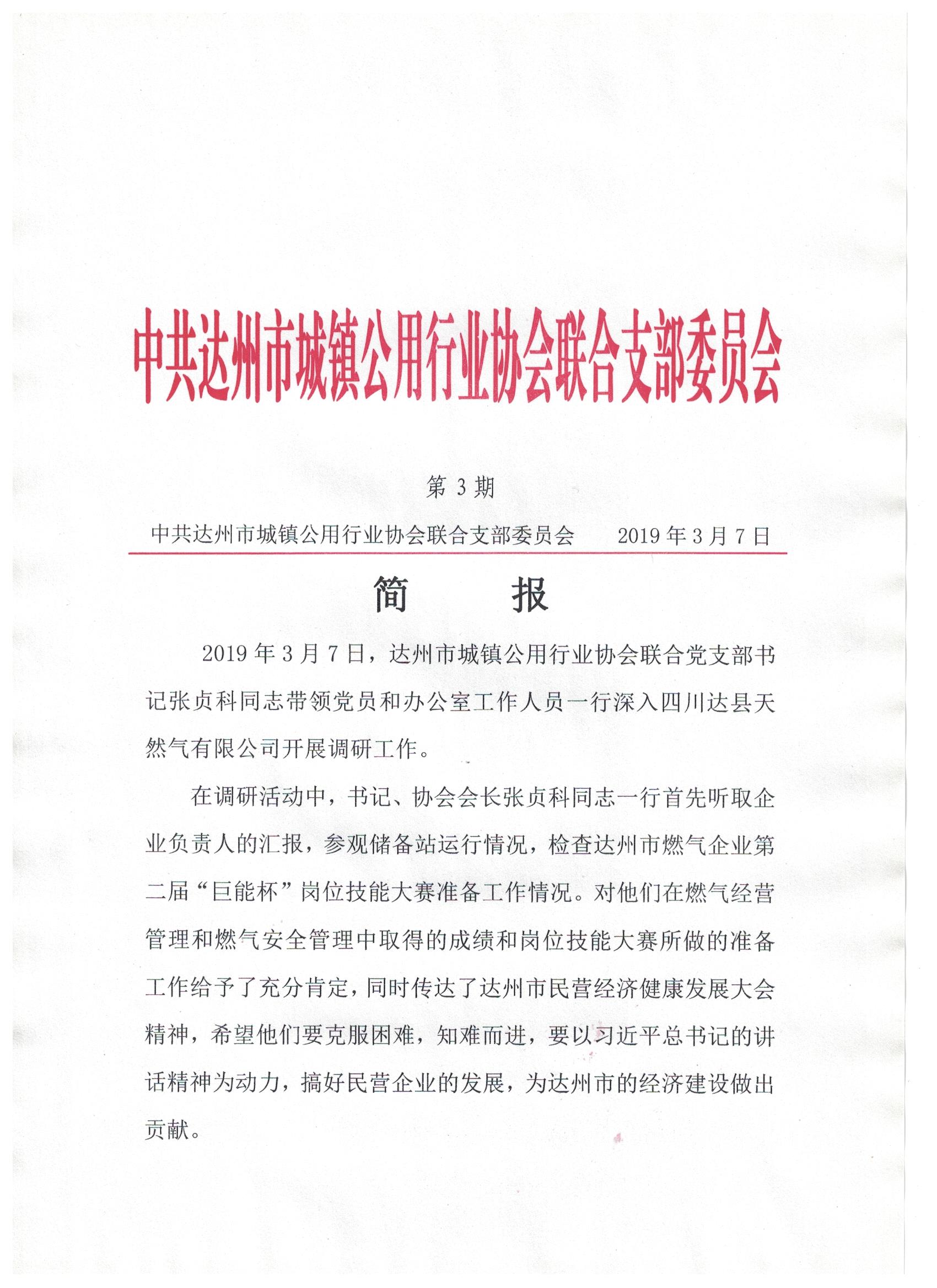 中共達州市城鎮(zhèn)公用行業(yè)協(xié)會聯(lián)合支部委員會2019年第三期簡報