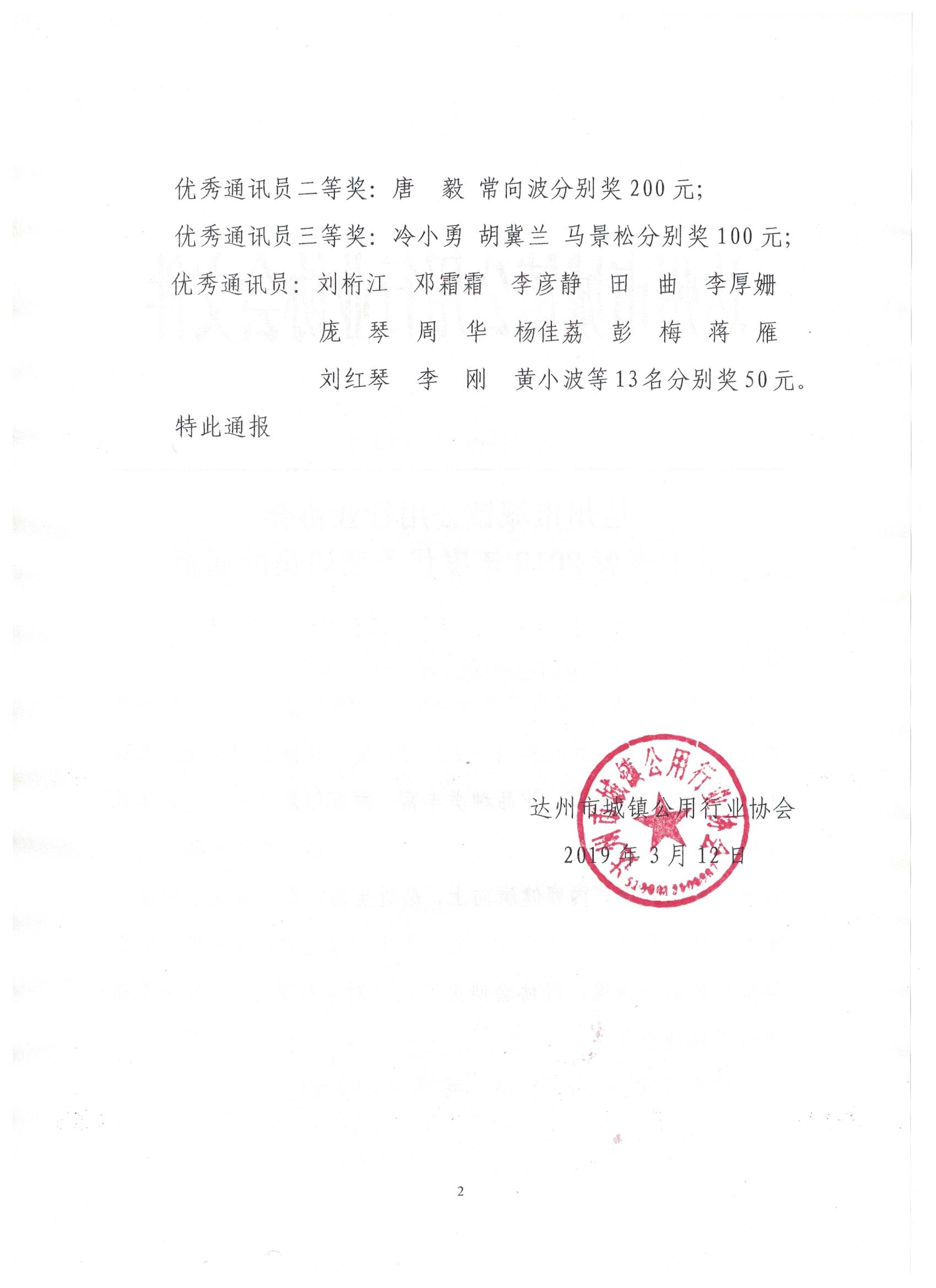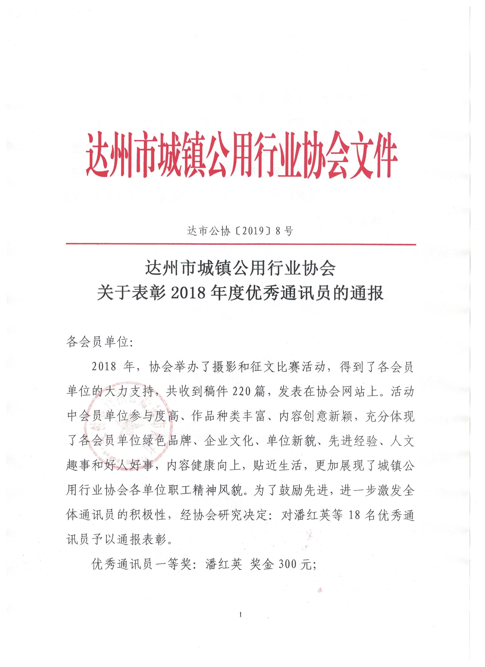 關(guān)于表彰2018年度優(yōu)秀通訊員的通報(bào)