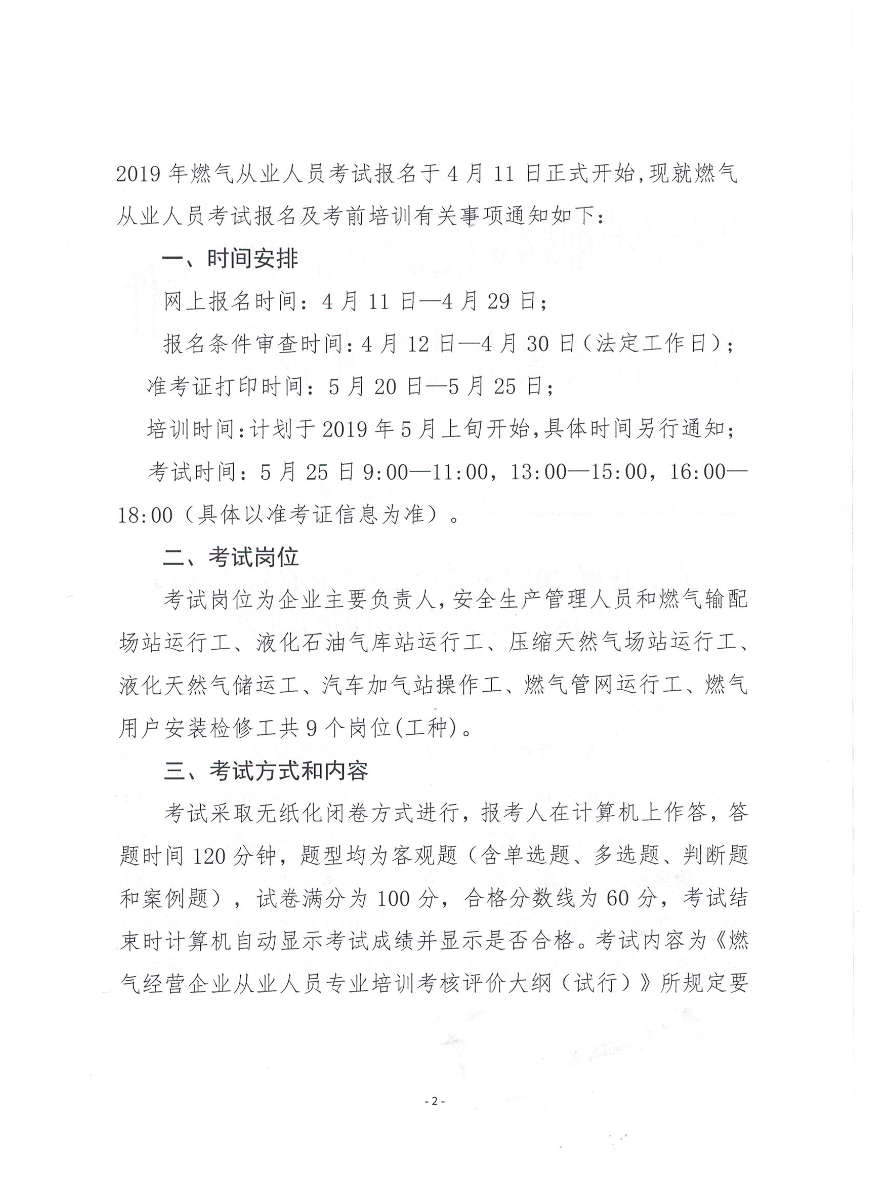 關(guān)于開展2019年燃?xì)饨?jīng)營企業(yè)從業(yè)人員考試報(bào)名及考前培訓(xùn)的通知