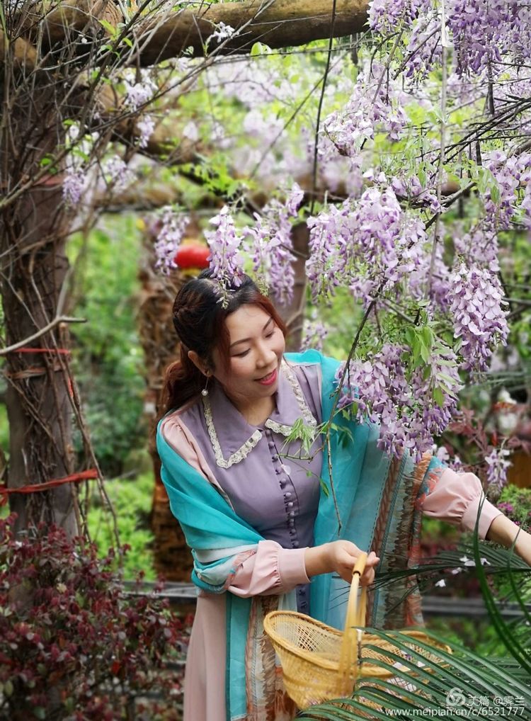 我聆聽著每一串紫藤的碎念淺吟,拾撿一片片飄落在風(fēng)中的花絮,一籃子的相思化為動聽的柔情蜜語。