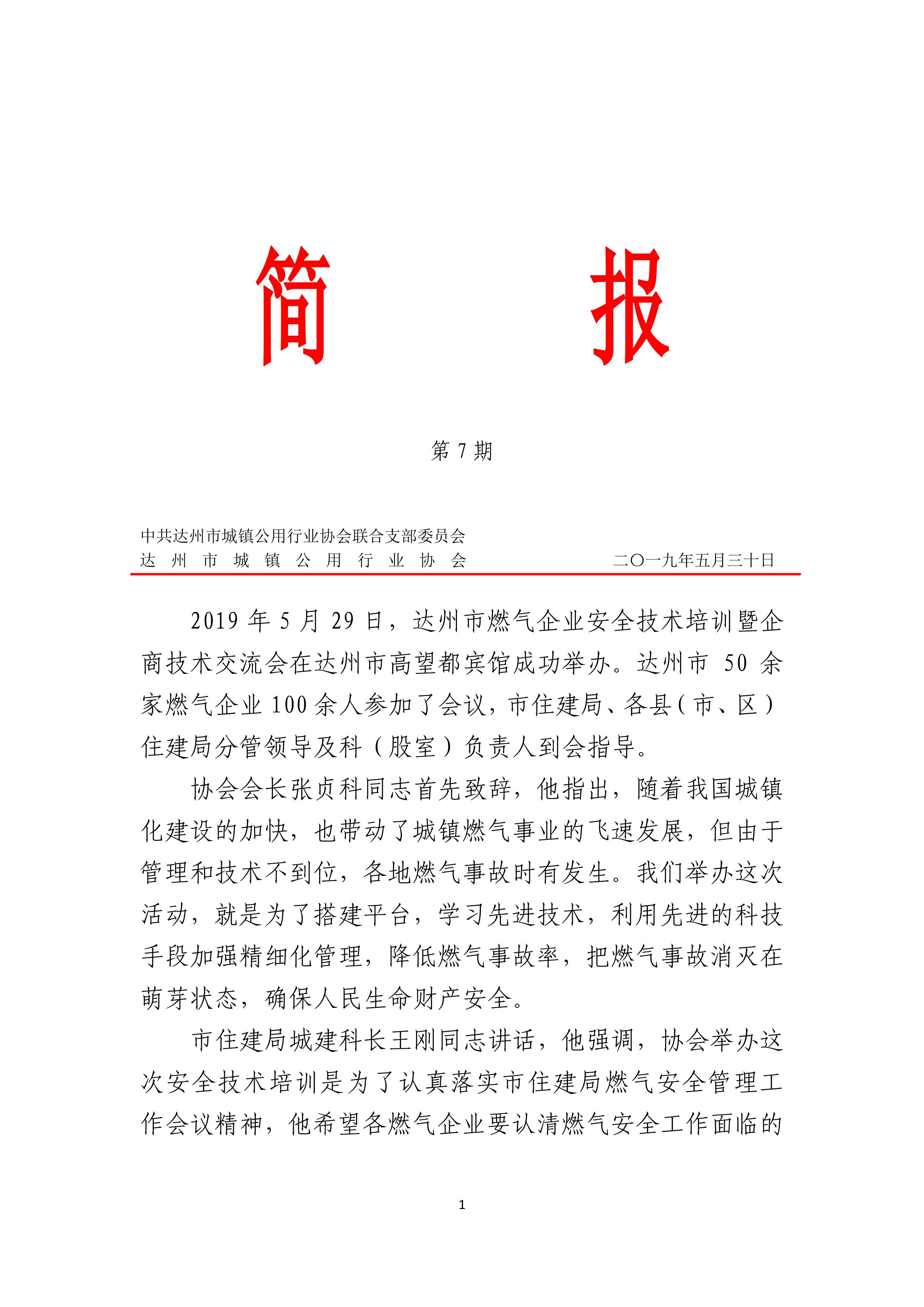 中共達(dá)州市城鎮(zhèn)公用行業(yè)協(xié)會聯(lián)合支部委員會2019年第七期簡報