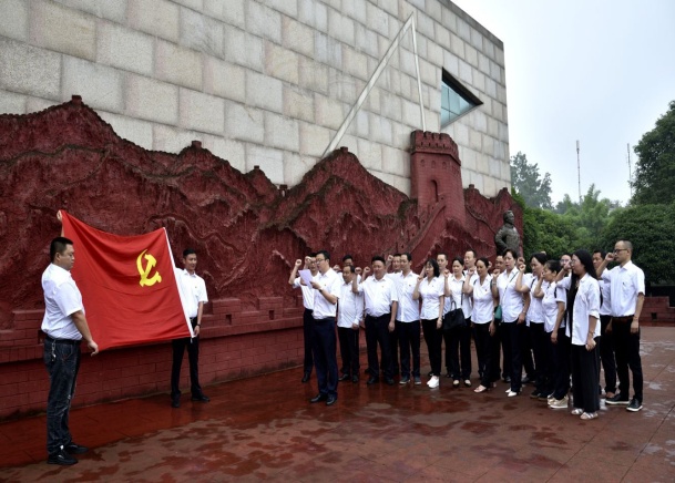 在講解員的帶領(lǐng)下,大家認真參觀了中流砥柱館、正面戰(zhàn)場館、川軍抗戰(zhàn)館等。一幅幅歷史照片、一件件陳列物品生動地展示了中華兒女救亡救國、奮勇殺敵的壯舉,讓大家真真切切接受了愛國主義教育,同時讓大家深深感受到革命先烈堅定的理想信念和政治追求,在英雄的雕塑前面,大家重溫了入黨誓詞。