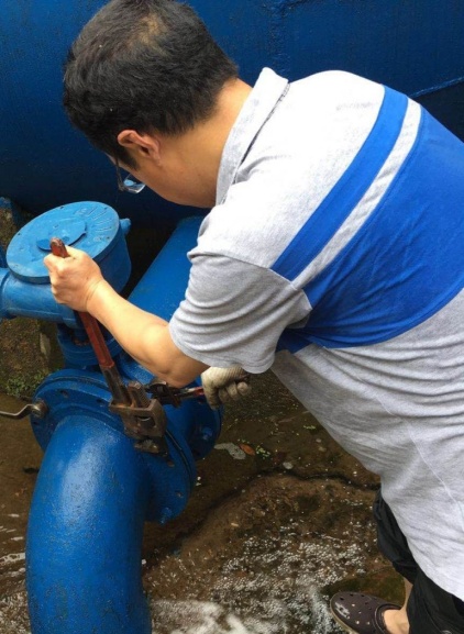 維修簡訊:近日,龍?zhí)侗谜痉峙渌涞呐盼鄣y因內(nèi)部銹蝕嚴重導致閉合不嚴,已無法正常使用。維修人員在拆卸蝶閥過程中,顧不上水箱排出的大水和底部排放的污泥淋濕弄臟全身,抓緊一切時間將幾百斤的舊蝶閥拆卸下來并重新安裝好新蝶閥,經(jīng)過將近三個小時的工作完成了更換工作,保證了全城人民的正常用水。