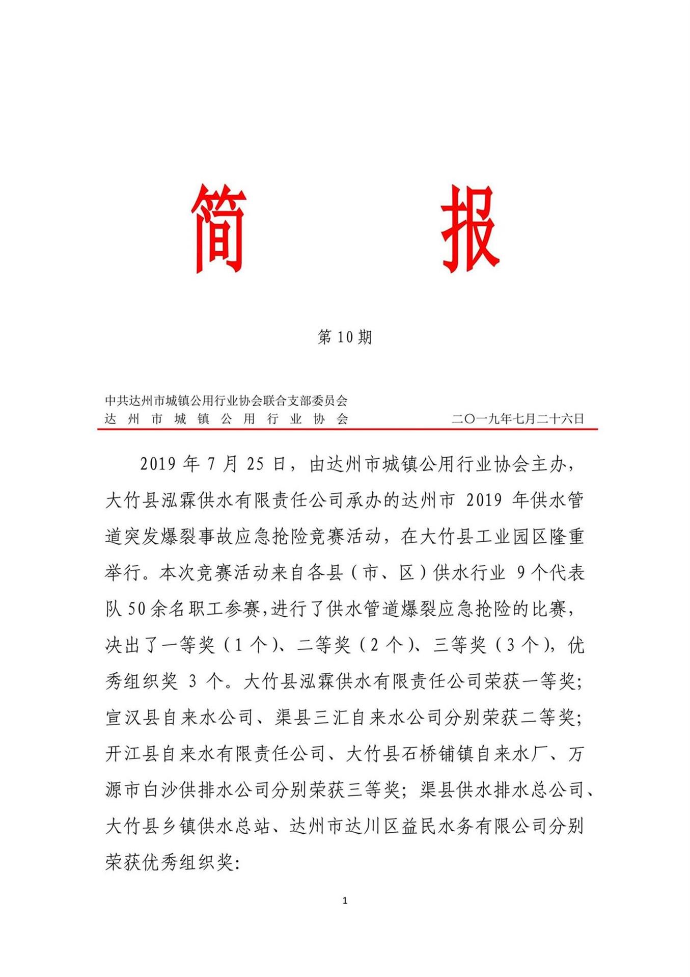 中共達(dá)州市城鎮(zhèn)公用行業(yè)協(xié)會聯(lián)合支部委員會2019年第十期簡報