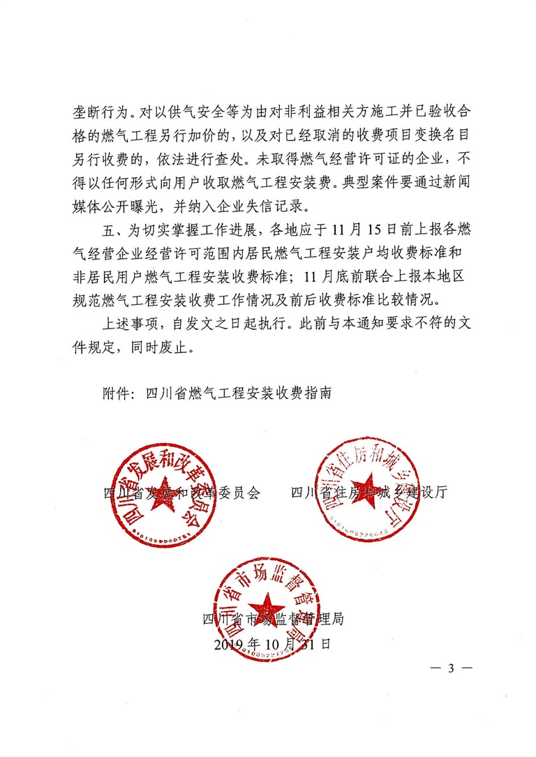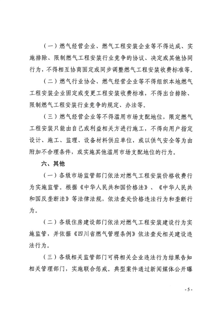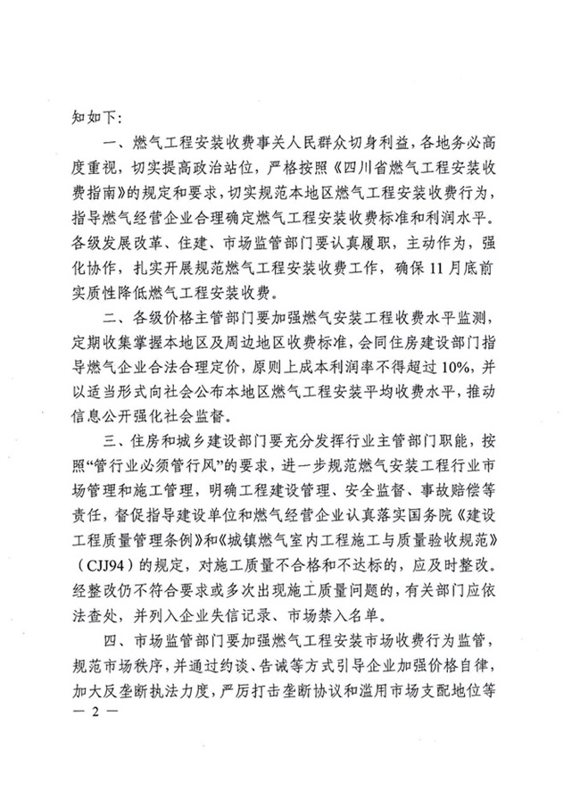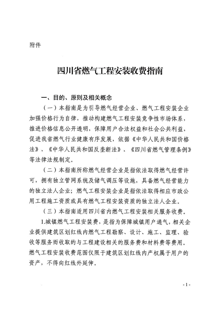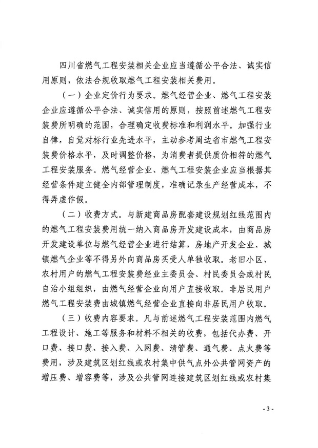 關于規(guī)范四川省燃氣工程安裝收費的通知