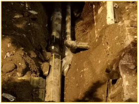 好事多磨難,一次次確定的可疑點都被開挖否認,搶修隊員們?yōu)榱藸幦r間,輪流作業(yè),都顧不上吃飯。連續(xù)奮戰(zhàn),直到找到泄漏點后,大家懸著的一顆心才終于放下了一半。但是新的問題又出現(xiàn)了,泄漏管道為PEDN160主管道,19點30分又正值用氣高峰,一旦停止供氣影響用戶多達上萬,又加上夜間作業(yè)恢復供氣風險太高。在現(xiàn)場研討后決定延遲停氣時間 (停氣時間:12月4日20:30-12月5日6:00),同時利用短信平臺向用戶發(fā)布停氣復供時間和注意事項。
