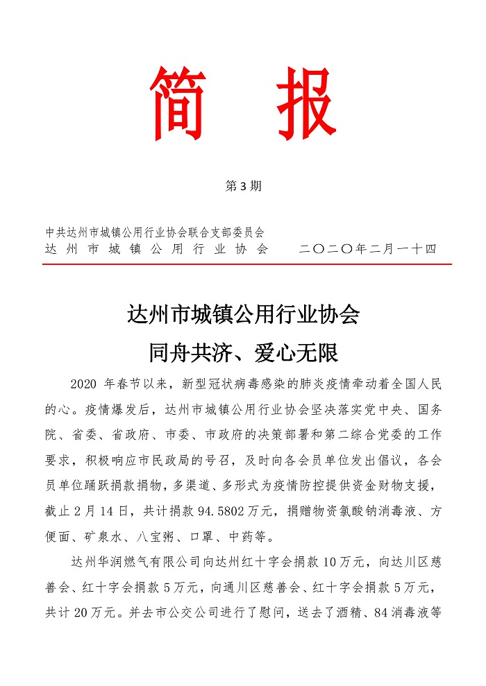 中共達州市城鎮(zhèn)公用行業(yè)協(xié)會聯(lián)合支部委員會2020年第三期簡報