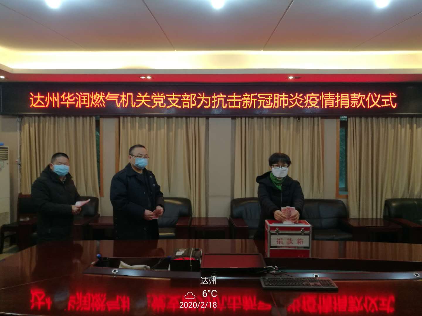 自新型冠狀病毒感染的肺炎疫情擴(kuò)散以來,一直深深牽動(dòng)著公司全體黨員干部員工的心。通過學(xué)習(xí),不斷增強(qiáng)“四個(gè)意識(shí)”。一方面積極貫徹落實(shí)中央、省市疫情防控的決策部署,另一方面抓好安全生產(chǎn)、供氣保障及優(yōu)質(zhì)服務(wù)工作,做到兩手抓兩手硬。2月17日下午,公司黨委發(fā)出倡議為抗擊疫情愛心捐款。公司黨員干部員工積極行動(dòng)起來,紛紛慷慨解囊,盡一份綿薄之力。在家自我隔離的員工通過網(wǎng)絡(luò)進(jìn)行,盡量減少接觸機(jī)會(huì),避免交叉感染。截止18日下午,公司全體員工共計(jì)捐款38230元。目前,該筆愛心捐款已轉(zhuǎn)交市紅十字會(huì),統(tǒng)籌用于疫情防控。